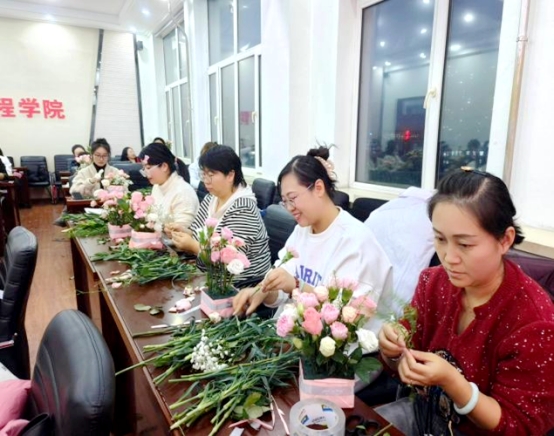 为丰富教职工精神文化生活,舒缓工作压力,营造温馨和谐的校园氛围,12月1日下午,由学校妇女联合会与学校工会联合主办、机关基层工会承办的“雅致桌花・点亮办公与居家时光”插花活动如期举行,来自各部门的50名教职工在图书馆608共赴一场与自然美学的浪漫邂逅。