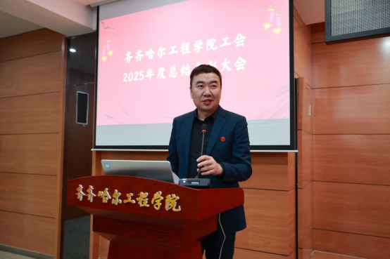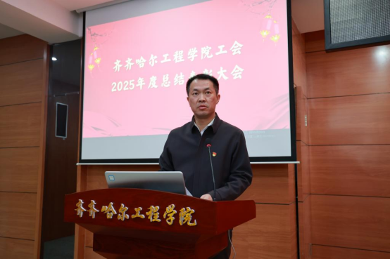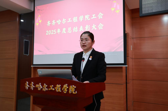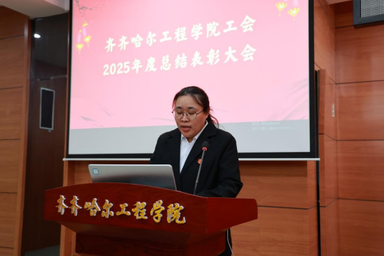 学校财务处处长孙爱萍作《齐齐哈尔工程学院工会2025年度财务报告》。